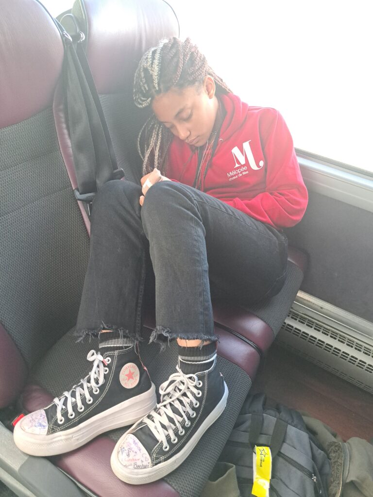 Nous venons d’atterrir, nous sommes en route pour les valises !