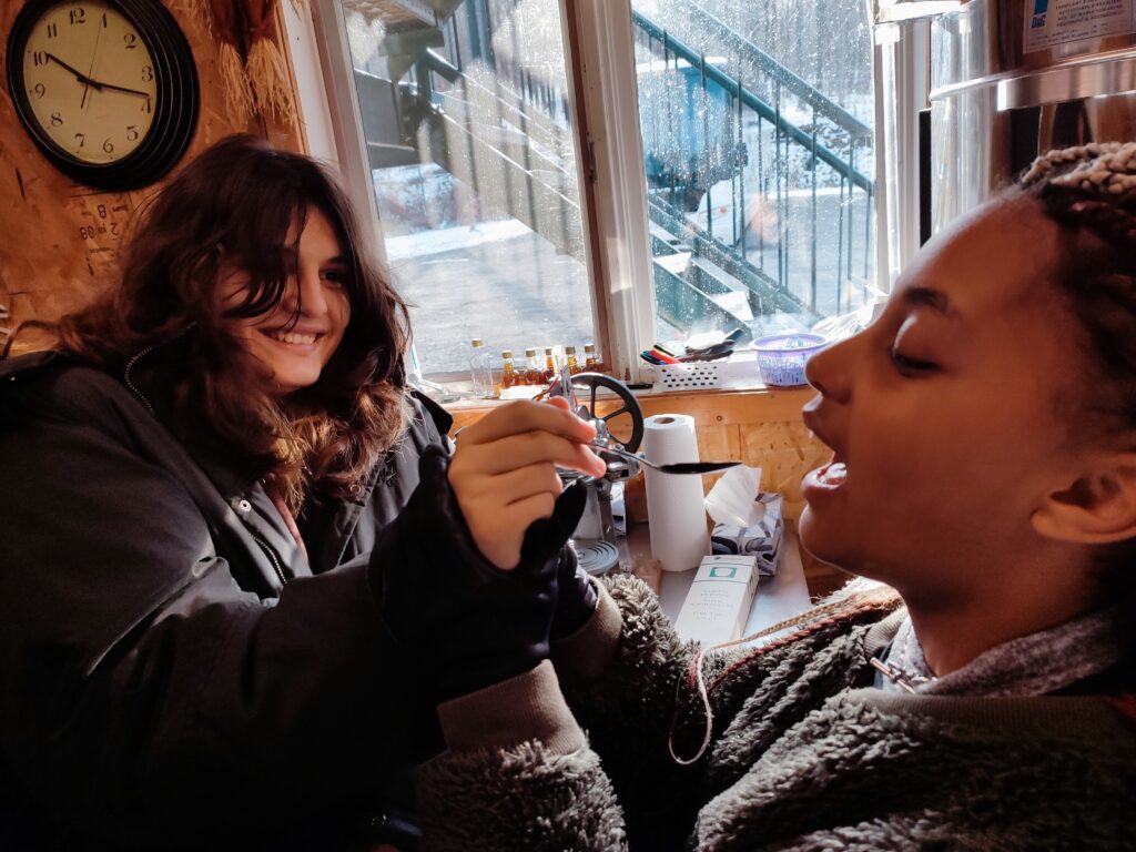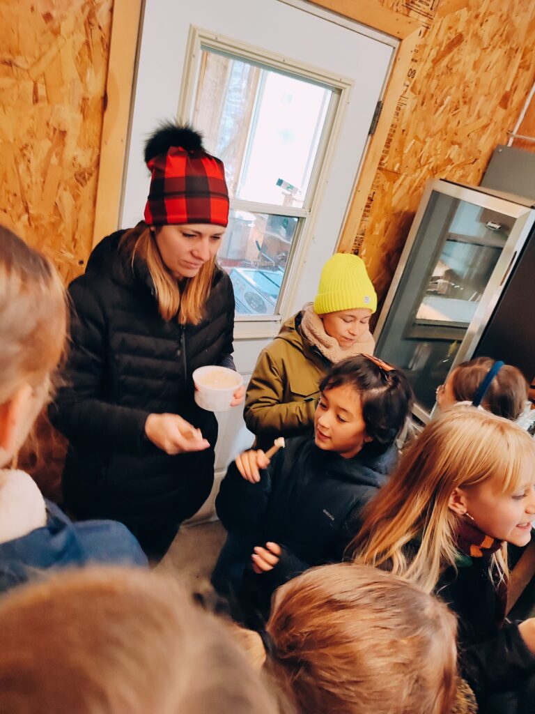 Il semblerait que le goût de la sève de cet arbre emblématique du Canada fasse l’unanimité auprès de nos petites exploratrices de la cabane à sucre de Saint-Matthieu du parc.